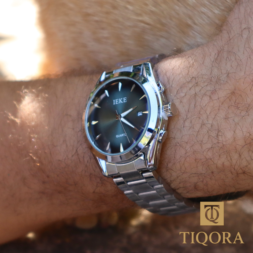 Montre homme IEKE au design classique et raffiné, bracelet en acier inoxydable, cadran rond élégant. Accompagnée de deux boutons de manchette assortis et d’un stylo, le tout dans un coffret cadeau premium.