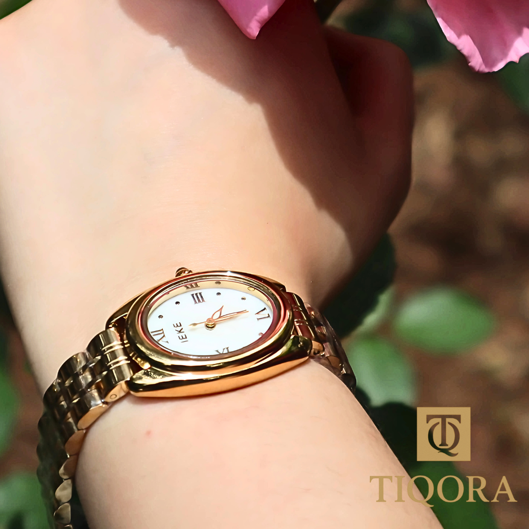 La IEKE Xerxes en version full gold s’impose comme un classique moderne pour les femmes au goût sûr. Son boîtier rectangulaire doré s’accorde parfaitement avec un bracelet en acier doré à maillons fins, pour un rendu lumineux, élégant et toujours chic. ✨