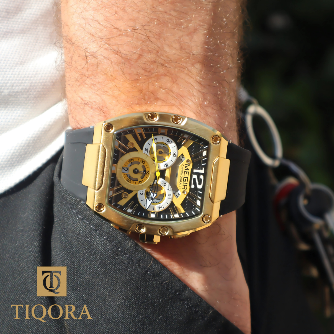 La montre MEGIR Sport 44x52 mm séduit par son format original et son look résolument dynamique. Son boîtier tonneau affirmé, son cadran lisible et son bracelet en silicone noir en font un accessoire parfait pour les hommes actifs au style moderne.